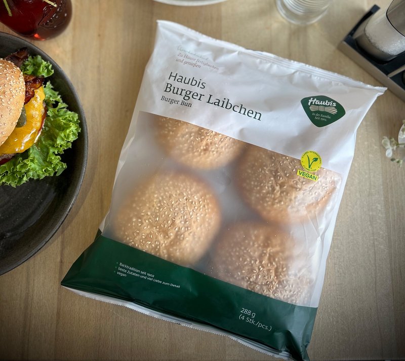 Das Haubis Burger Laibchen können Sie tiefgekühlt in allen Haubis Backstuben kaufen, sowie im gut sortierten Tiefkühlregal bei